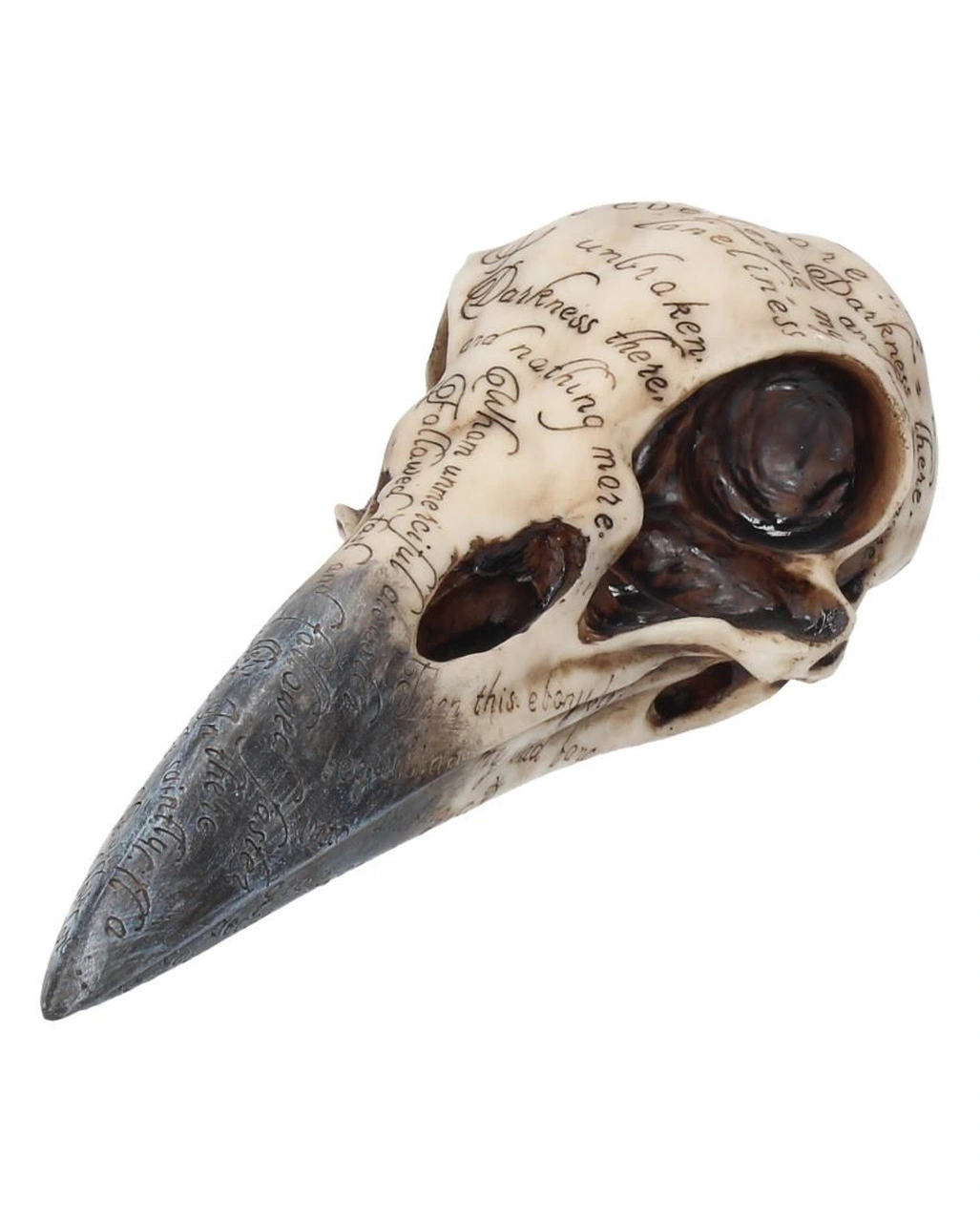 Edgar Allan Poe gilt als Meister der Kriminalliteratur und weiß ganz genau, wie er die Menschen zum Gruseln bringt. In Anlehnung an sein Gedicht “Der Rabe” erhältst du von uns Edgar´s Raben Totenschädel als morbide Halloween Tischdeko. Der Raben Schädel ist mit viel Liebe zum Detail gearbeitet und mit Zitaten aus seinem Gedicht beschrieben. Ein echter Blickfang für Fans des Morbiden!