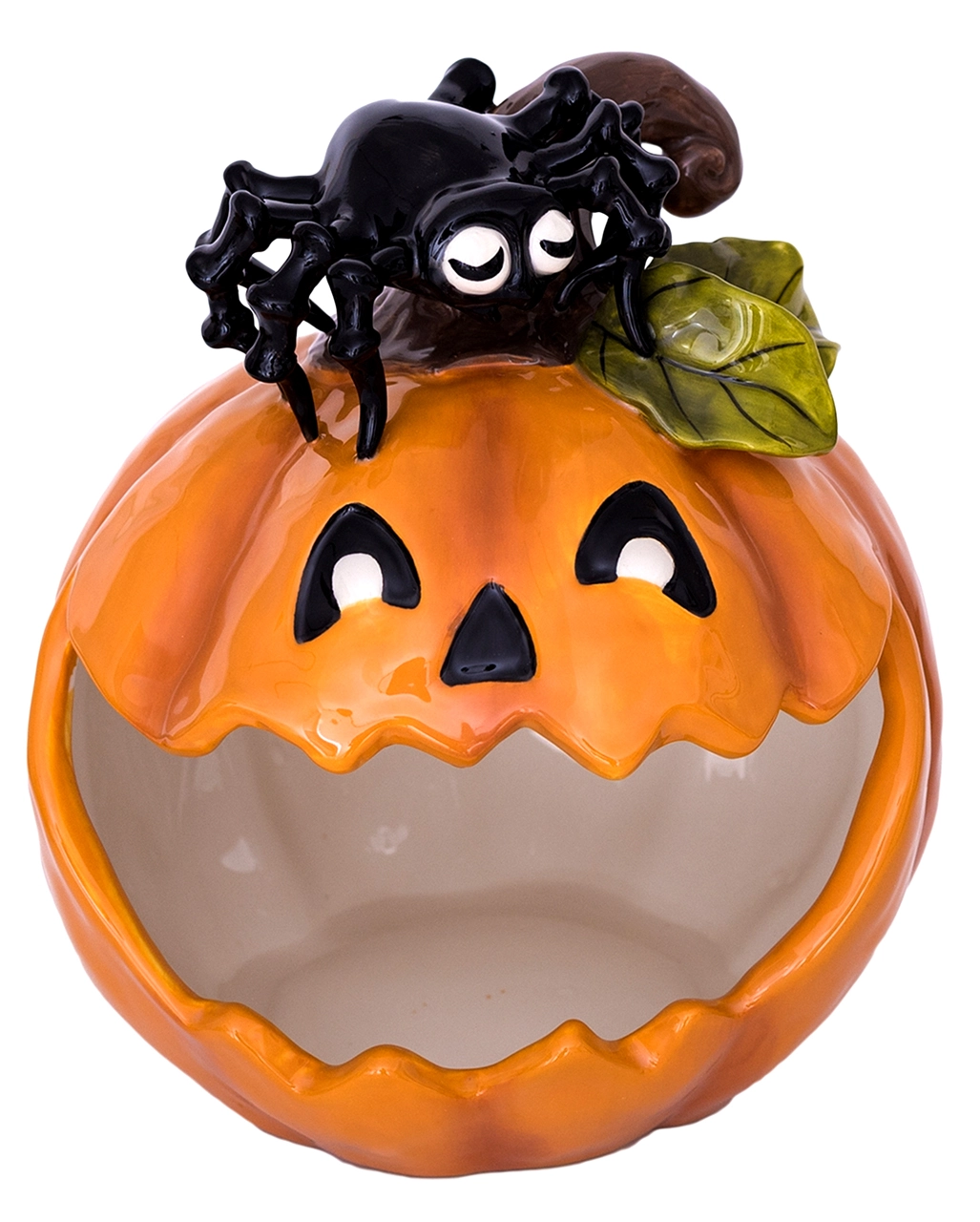 Lieferumfang: 1 x Grinsender Kürbis Keramik Süßigkeiten Schale 21cm