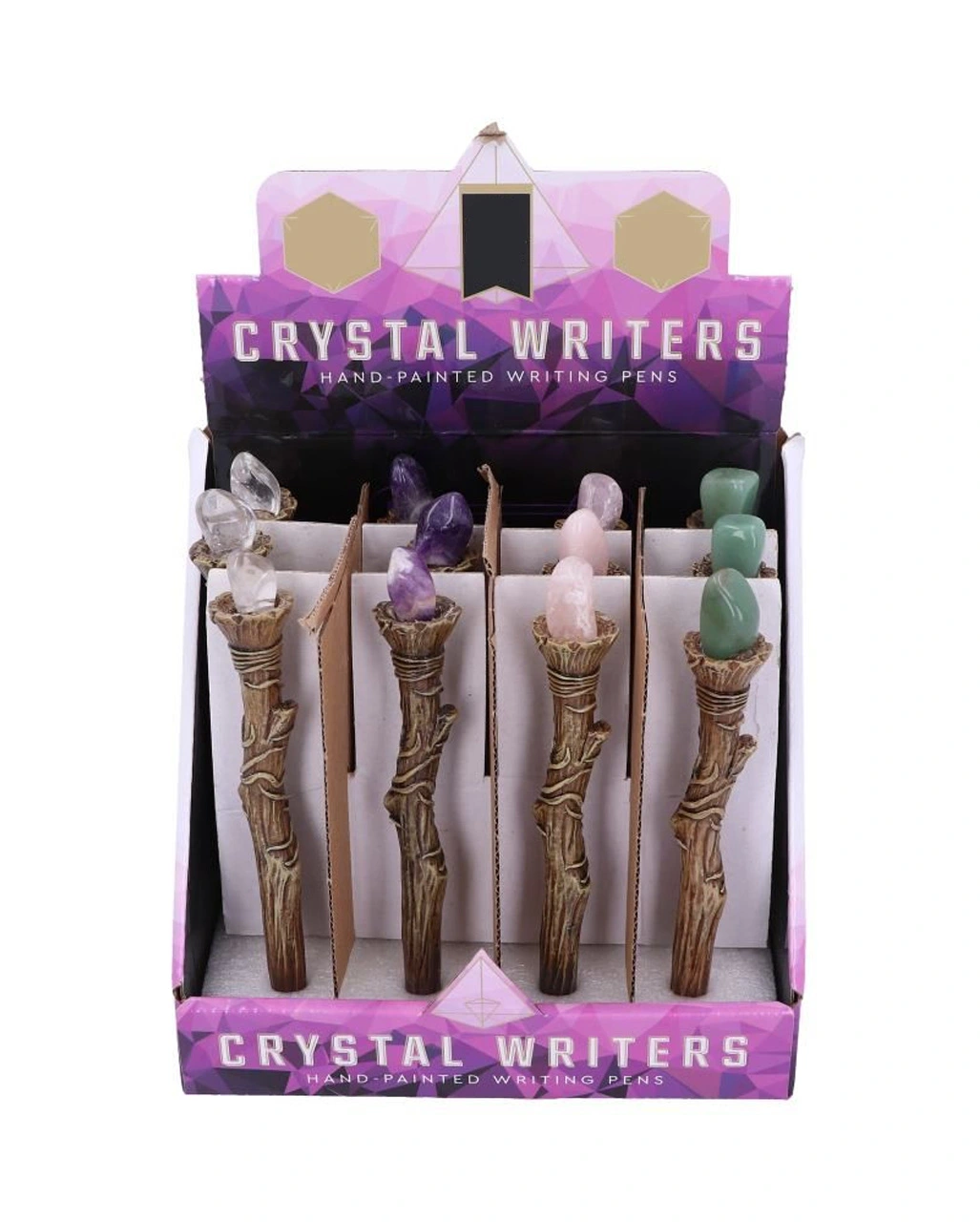 Der Hexen Zauberstab Kugelschreiber besteht aus Polyresin (Kunststein) und ist mit viel Liebe zum Detail verarbeitet & handbemalt. Der Zauberer Kuli ist in vier Farben transparent, violett, rosa & grün. Die vier verschiedenen Farben sind nicht wählbar, bestelle am besten mehrere gleichzeitig, dann ist die Chance der Abwechslung größer. Achtung, der Kunststein ist stabil, kann aber brechen.