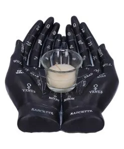 Die Handlesekunst wird auch als Chiromantie bezeichnet und geht davon aus, dass sich die Zukunft eines Menschen in seinen Hände ablesen lässt. Mit diesem Schwarze Chiromantie-Hände Teelichthalter bringst du mystisches Flair in deine vier Wände. Auch als Geschenkidee macht sich der Pagan Teelichthalter ganz hervorragend.