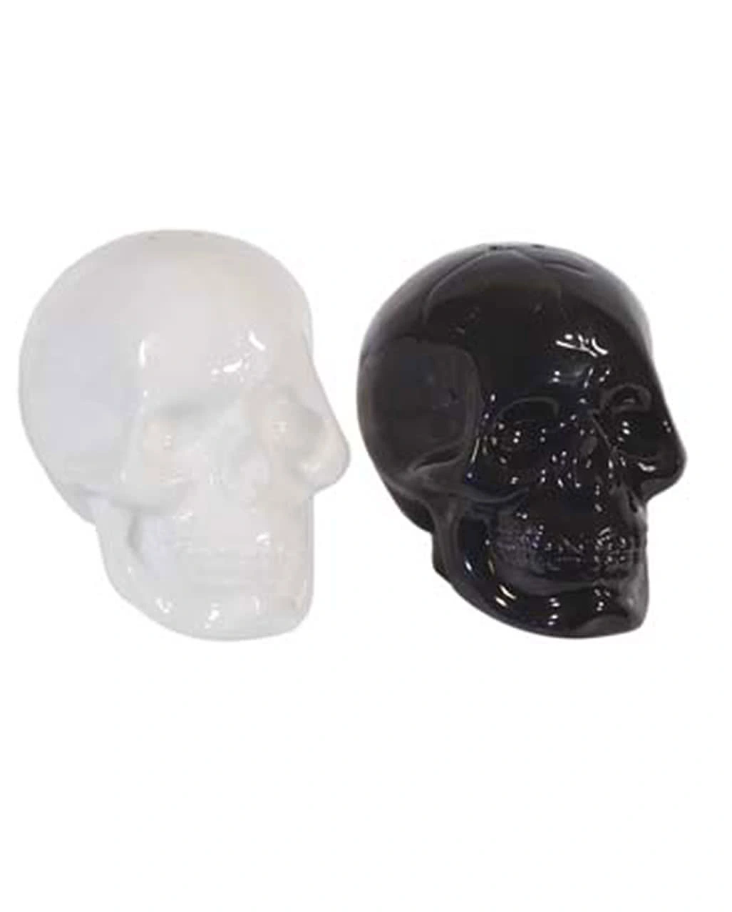 Das 2er-Set Totenkopf Salz & Pfefferstreuer besteht aus zwei gleich großen Keramik-Totenköpfen – einem schwarzen für Pfeffer und einem weißen für Salz. Die beiden Totenschädel sind das ideale Präsent für Halloween Fans, Gothics und Piraten, denn Totenköpfe sind hier immer angesagt. Wenn du zu den Gothic Gewürzstreuern noch weitere passende Halloween Produkte für die Tischdekoration brauchst, empfehlen wir die Party Picker Skull & Bones sowie die Totenkopf Servierplatten 4-er Set.