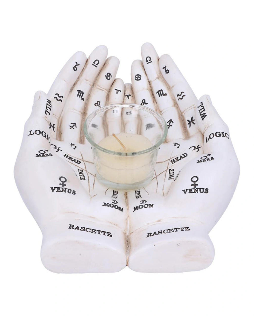 Weiße Chiromantie-Hände Teelichthalter