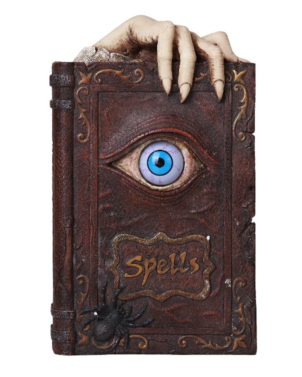 Auch als Halloween Geschenkartikel ist die Zauberbuch Spardose mit Wackelauge eine Idee, die unheimliche Freude verbreiten wird. Die Sparbüchse ist aus hochwertigem Polyresin gegossen und wurde anschließend von Hand bemalt. Sie sieht aus wie das Zauberbuch einer Hexe. Passend dazu steht “Spells”, also Zaubersprüche, auf dem Cover und man sieht eine Hexenhand auf der oberen Seite. Die Magiern hat die Sparbüchse verzaubert und mit einem Wackelauge versehen. Auf diese Weise ist das Geld besser vor Langfingern geschützt. Schließlich hat immer jemand ein Auge auf dein Geld.